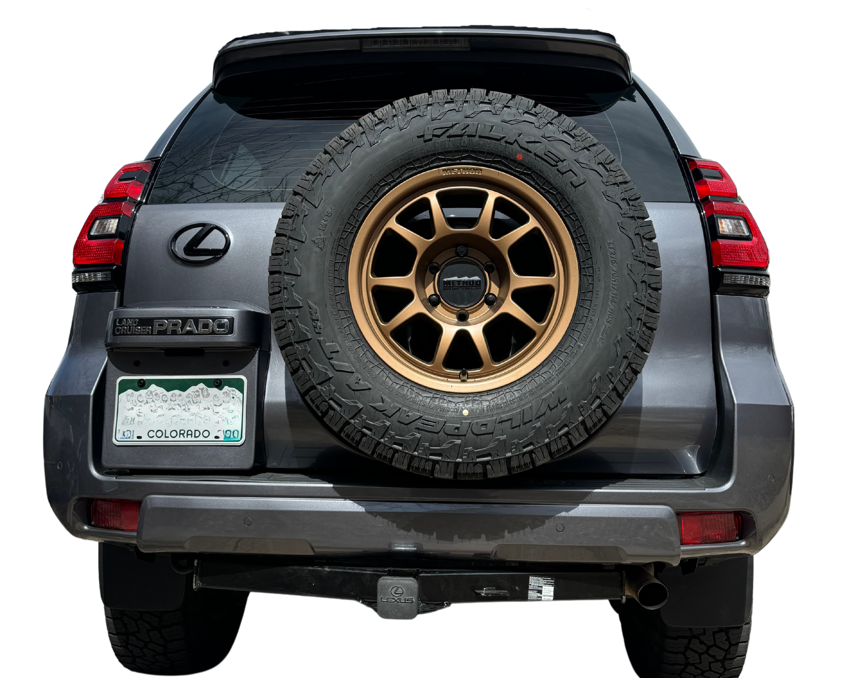 There are all sorts of options - mount it on the rear tire like a true Prado, mount it on the license plate holder, and more.